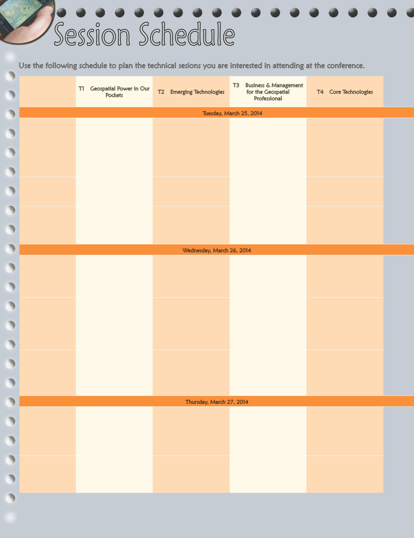 Use the following schedule to plan the technical sesions you are interested in attending at the conference.