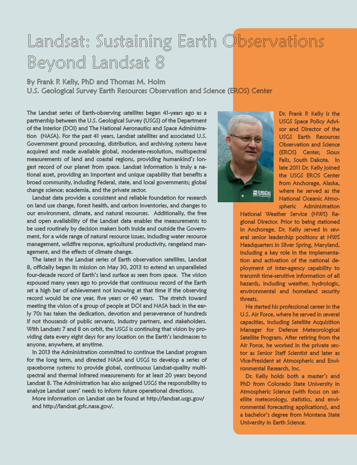 Landsat 8. The Administration has also assigned USGS the responsibility to