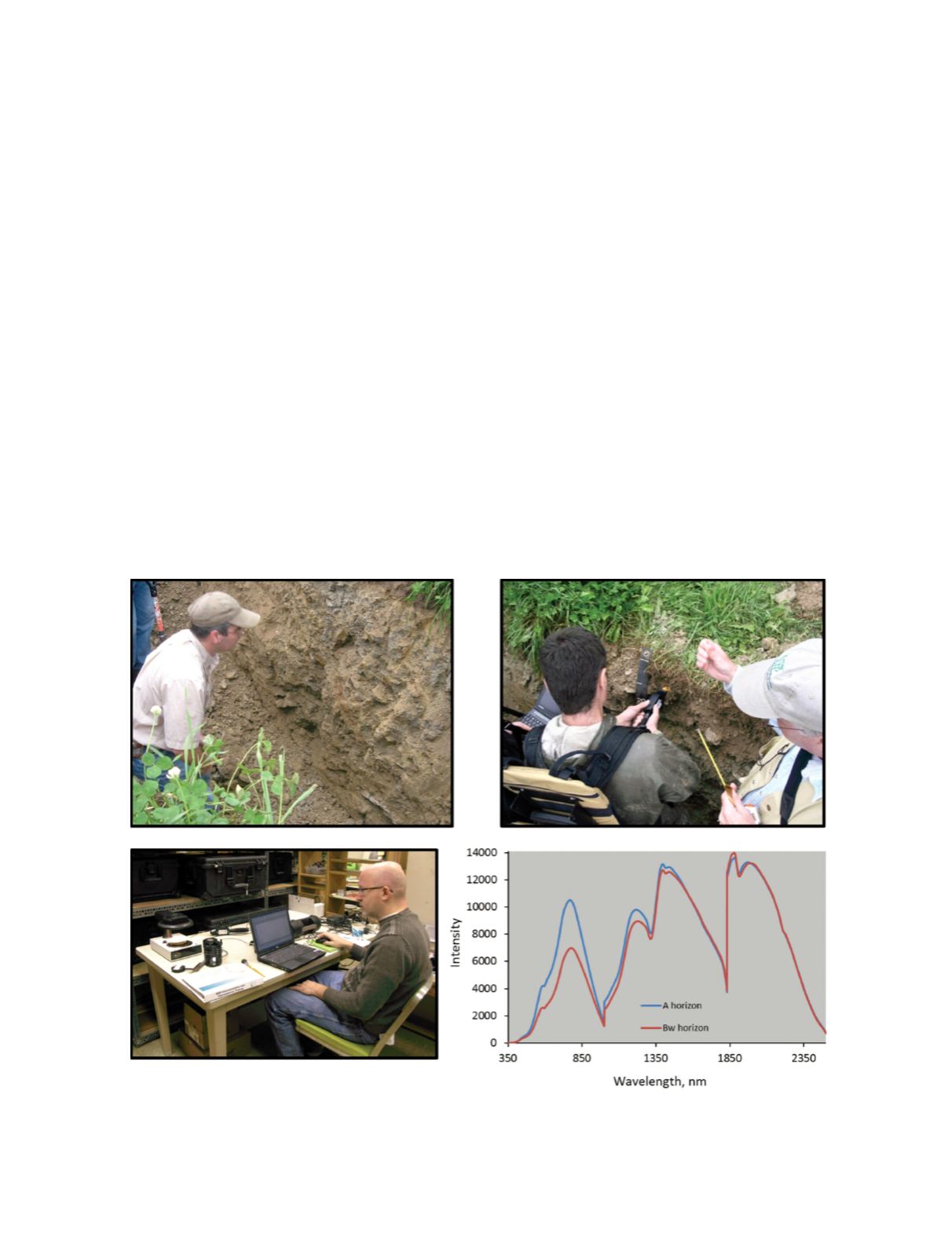 . Soil observations and measurements using traditional visual means (upper left) and visible-near infrared diffuse