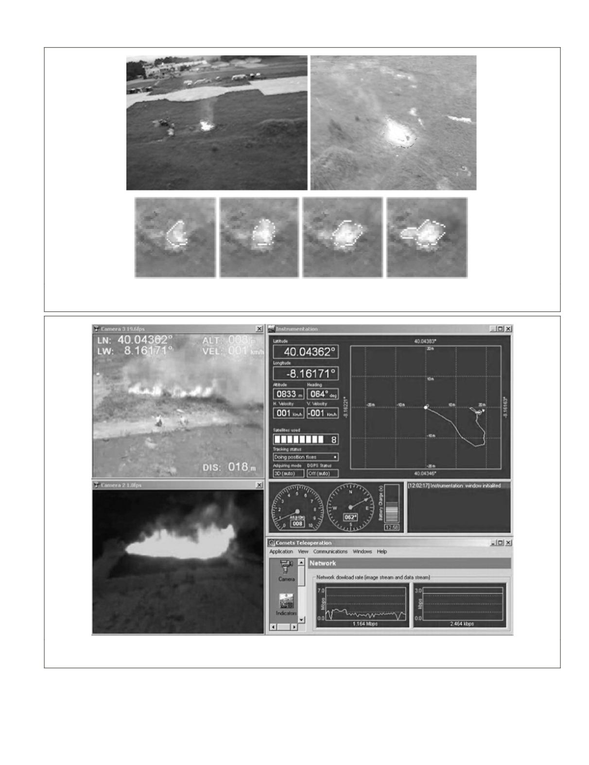 Figure 8. Fire monitoring with flame identification and its expansion over time (Images courtesy of J.R. Martínez-de-Dios and A. Ollero;