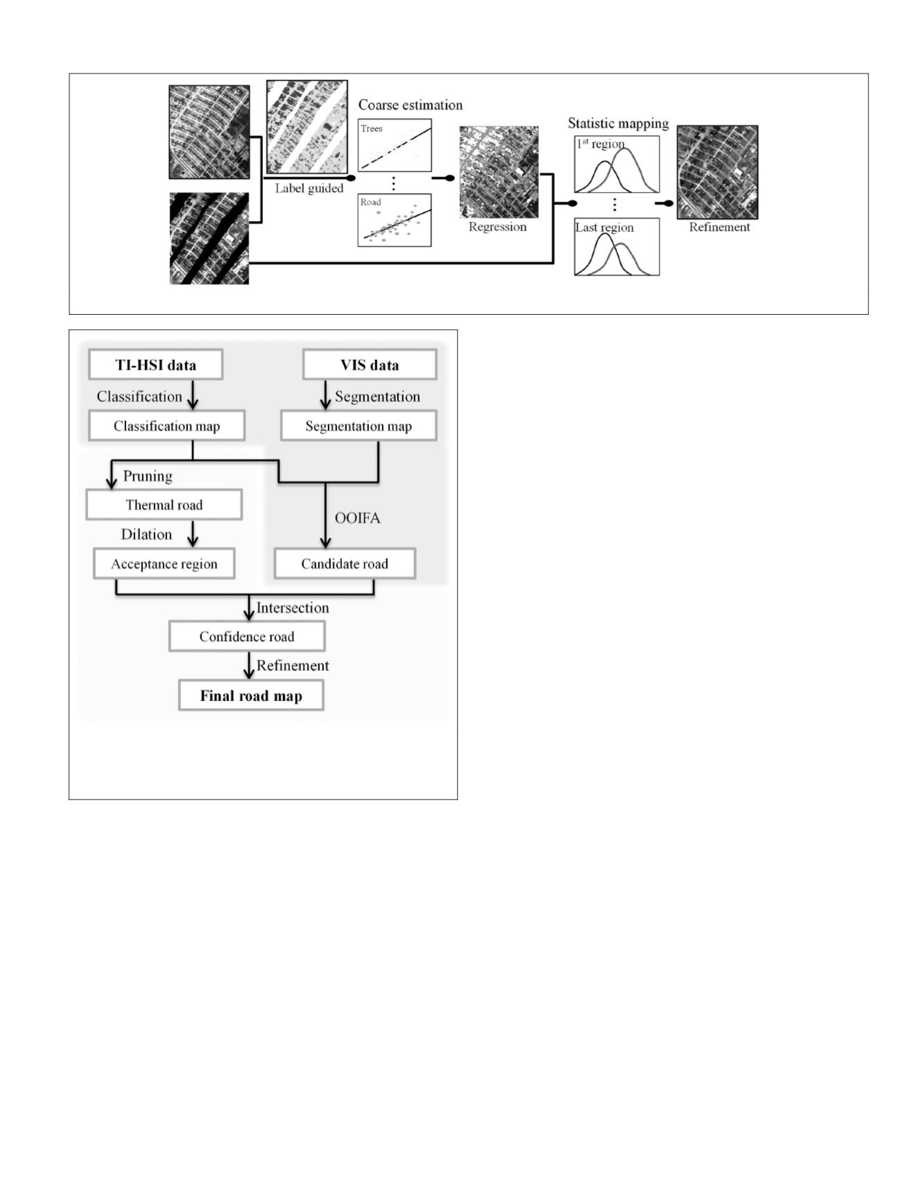 As shown in Figure 6, the flowchart for road extraction