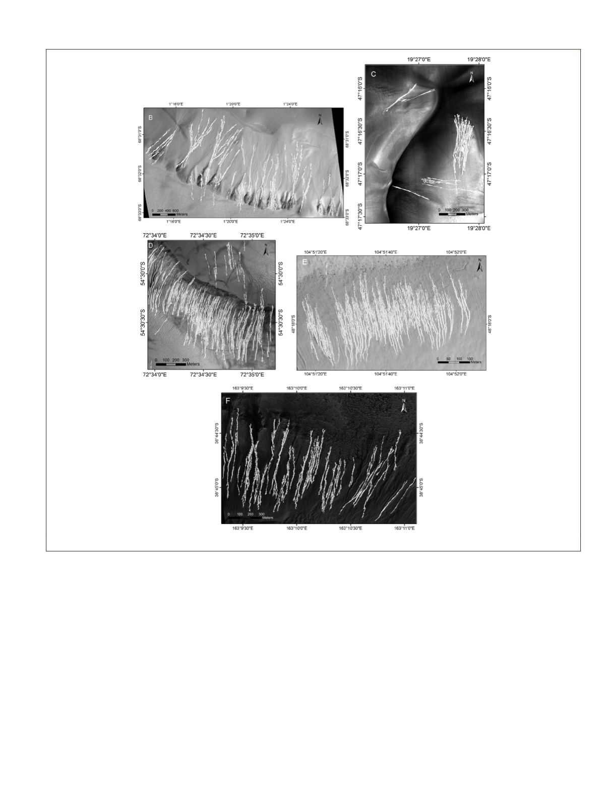 manually delineated gullies which are not covered by detec-