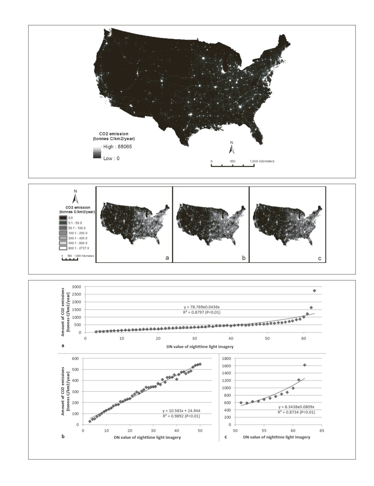 Figure 3. Correlations between DN values of nighttime light imagery and amount of CO