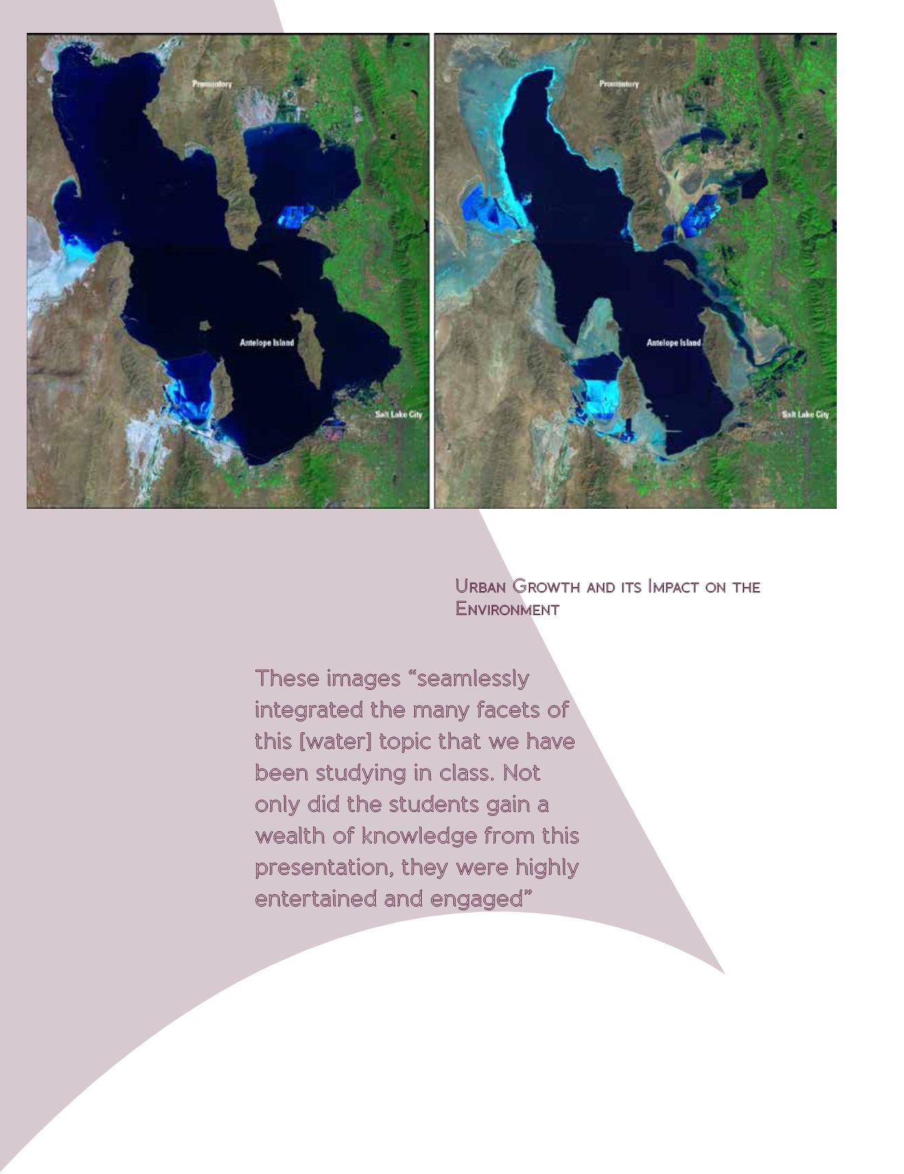 Figure 1 – Landsat image-pair showing dramatic change in the surface area of the Great Salt Lake, Utah, due to snowmelt and heavy rainfall (1985,