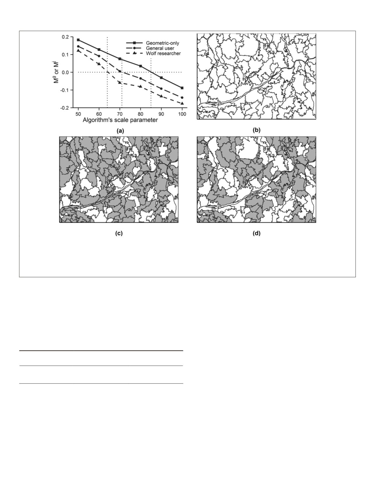 er (scale 64, 392 objects), and (d) optimal segmentation indicated by M