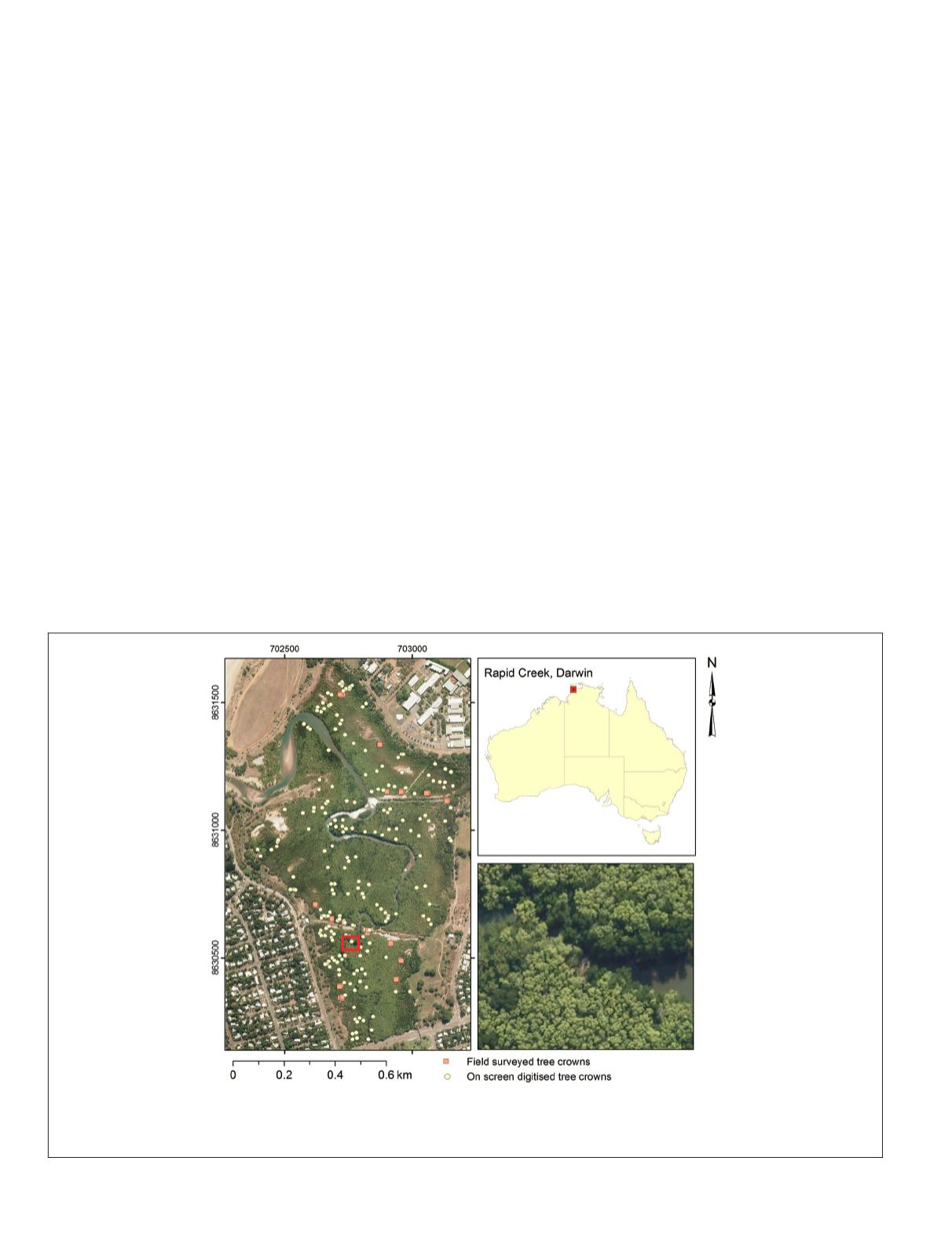 Plate 1. The study area is located in Rapid Creek in Darwin, Northern Territory, Australia. The map shows the validation dataset includ-