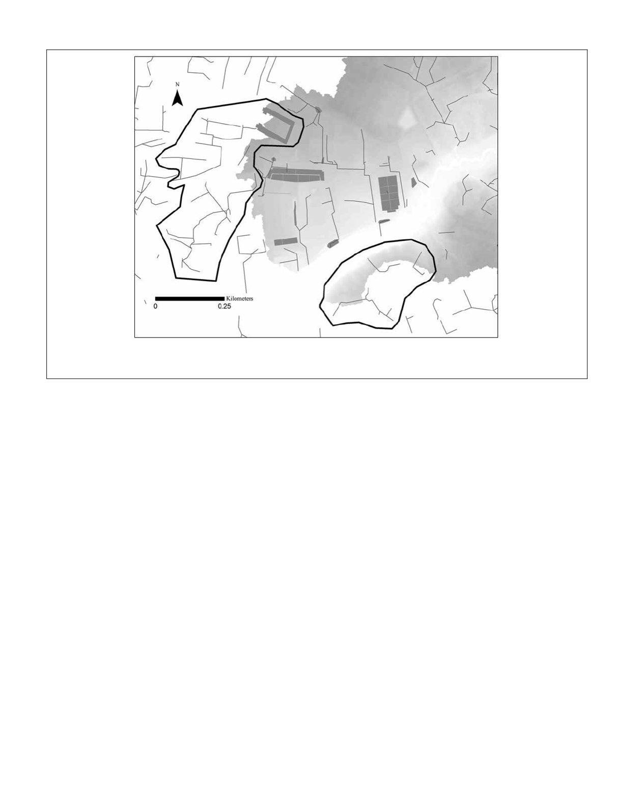 lidar-elevation model several areas that met the criteria under