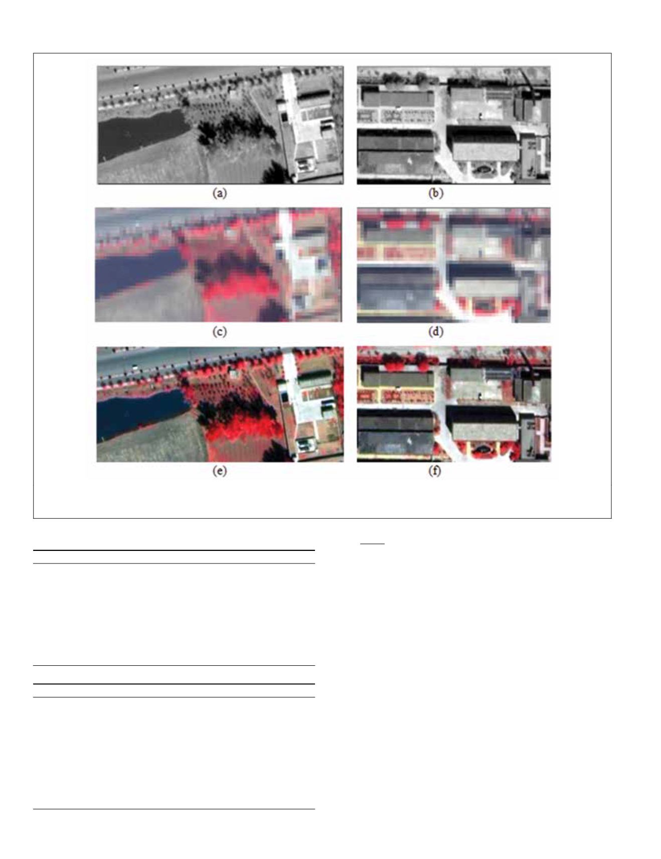 Plate 2. Fusion results by block-regression-based algorithm. Fusion results and the multispectral images are displayed in the form of