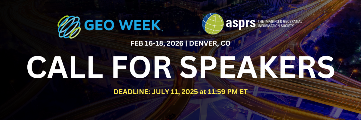 We’re looking for professionals like you to speak at Geo Week 2026, taking place February 16–18 in Denver, Colorado. Submit your proposal to be considered for sessions hosted by Geo Week, ASPRS, or RCN. If accepted, we’ll match your presentation to the session where it fits best. The deadline to submit is July 11, 2025.